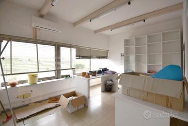 Sulla strada statale 131, in località More Corraxe, proponiamo porzione di un fabbricato ad uso commerciale strutturato su tre livelli. Si propone locale commerciale open space di 490mq al primo piano dello stabile, a cui si accede tramite vano scala e/o ascensore; vi è inoltre presente un montacarichi condominiale collegato all'immobile tramite corridoio. Attualmente parte del locale è tramezzato da muri in cartongesso dai quali sono stati ricavati anche due vani ad uso ufficio resi molto luminosi data la presenza di ampie vetrate. Il locale si propone anche in locazione o con la formula rent to buy. IMMOBILE SOGGETTO A IVA