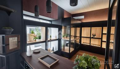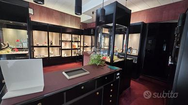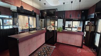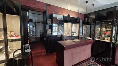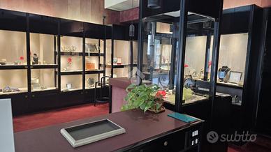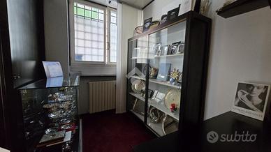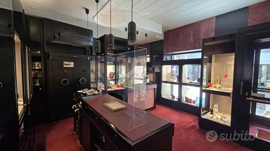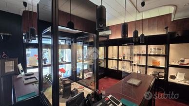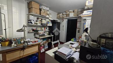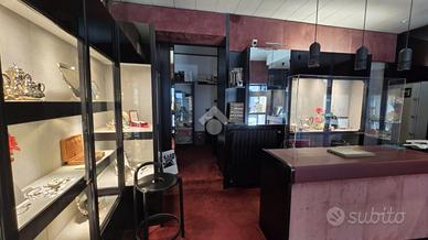 una locale commerciale e 2 locali nel retro adibiti ad ufficio/laboratorio, un bagno e cantina al piano interrato.