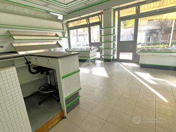 La soluzione, che misura circa 70 mq, è composta da un vano principale dotato di doppia vetrina di cui una funge da ingresso. Dallo stesso si accede al retro del negozio dove si trovano il servizio igienico e la cella frigorifera.