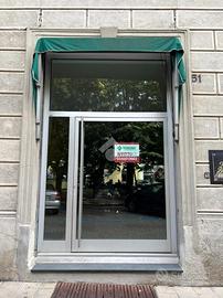 L'ampia vetrina posta in fronte allo stabile conferisce visibilità e luminosità all'ambiente interno.