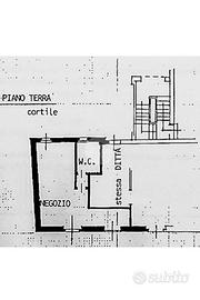 Proponiamo in locazione un negozio avente superficie interna di circa 30 metri quadrati, disposti al piano terra di un edificio di due piani.