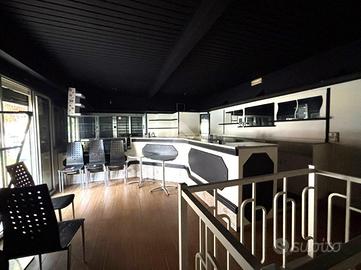 * Piano Terra (circa 35 mq): unico vano completamente arredato con bancone, tavolini, sedie e attrezzature, pronto all'uso. (possibilità di cucina)