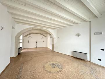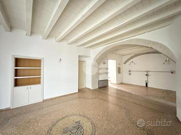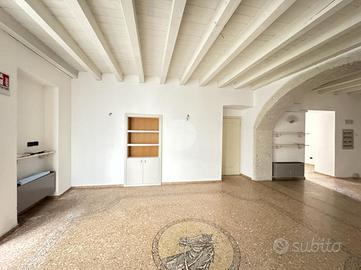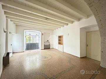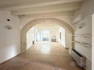 All'immobile si accede tramite la vetrina fronte strada oppure tramite una seconda vetrata posta all'interno della corte comune con altre unità.