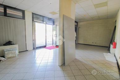 Il negozio ha una superficie di circa 60 metri quadrati ed è composto da un ampio spazio open space al piano terra. Le tre grandi vetrate garantiscono una buona illuminazione naturale e rendono l'ambiente luminoso. L'immobile è dotato di impianto elettrico, impianto di illuminazione e di un bagno privato. La posizione ad angolo, con doppio ingresso, lo rende adatto a diverse attività commerciali.