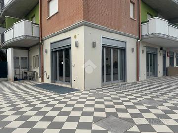 Elegante e comodo locale commerciale, in complesso residenziale di recente costruzione. Il locale vanta tre ampie ventrine ben visibili dalla strada ed un'area esterna pavimentata di esclusiva proprietà perfetta per allestire tavoli all'esterno di circa 126 mq. L'immobile è composto da un unico ambiente luminoso e spazioso ed un bagno finestrato.