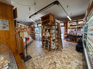 Il negozio di 90mq è composto da un plateatico esterno di proprietà, dal quale si accede attraverso un doppio ingresso all'interno del vano principale; successivamente nel retro dell'attuale bancone troviamo il bagno, lo spogliatoio, un magazzino e l'attuale zona adibita a celle frigorifere. Attualmente è adibito a rivendita gastronomica di prodotti tipici caseari e ortofrutticoli. C'è inoltre la possibilità di installare la canna fumaria. L'immobile sarà libero da fine anno.