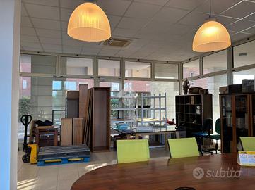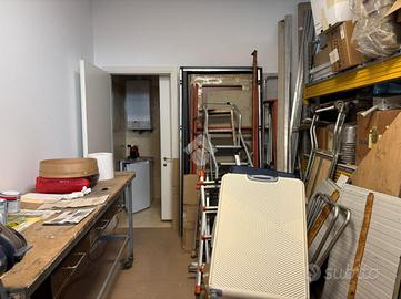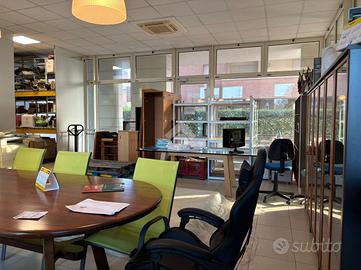 Composto da due grandi ambienti: l'ingresso al vano principale dotato di ampie vetrine, attualmente adibito a ufficio di 50mq circa, e il retro ad uso deposito con bagno di altri 50mq circa