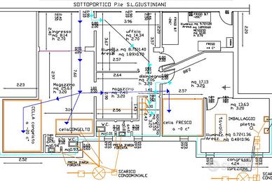 Il negozio è composto da tre unità collegate tra loro, entrambe con vetrina fronte strada e zona espositiva per la vendita, successivamente, nel retro, troveremo una zona adibita a laboratorio produzione e confezionamento, e due vani dedicati alle celle frigo e allo stoccaggio. Completano la soluzione, uno spogliatoio e due bagni.