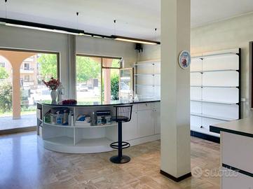 Il negozio si estende su una superficie di 90 mq, dotato di ampie aperture sul fronte de locale che illuminano e lo rendono accogliente.
