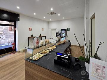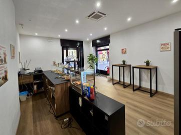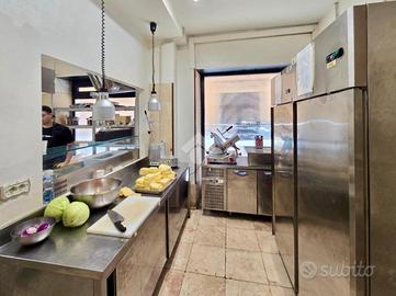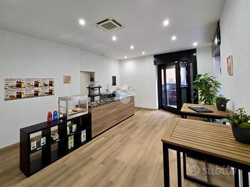L'immobile, situato al piano terra, si distingue per le sue tre vetrine angolari e un ingresso vetrinato che garantiscono un'ottima esposizione. All'interno, l'open space offre ampie possibilità di personalizzazione, mentre il locale ad uso cucina è perfetto per attività di ristorazione. Completano la proprietà un servizio con antibagno e un pratico ripostiglio.