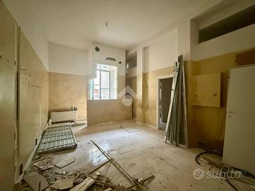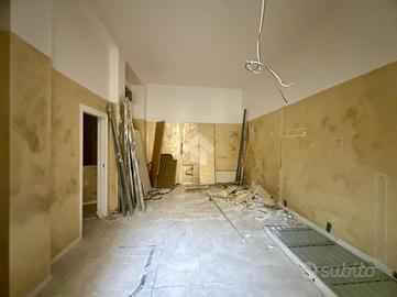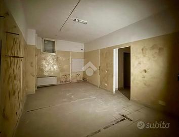 L'immobile si apre con un ingresso che conduce a un ampio open space, ideale per accogliere clienti e visitatori. Il piano terra è completato da un servizio finestrato a norma per disabili, garantendo accessibilità e comfort. Una scala interna collega il piano terra a due locali di diversa metratura situati al piano interrato, offrendo ulteriore spazio per esposizione o magazzino, oltre ad un secondo bagno finestrato su bocca di lupo.