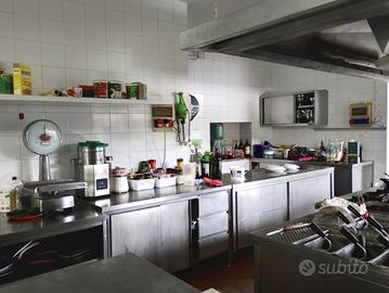 La cucina di 70 mq è completamente attrezzata con forni professionali e celle frigorifere.