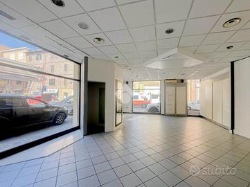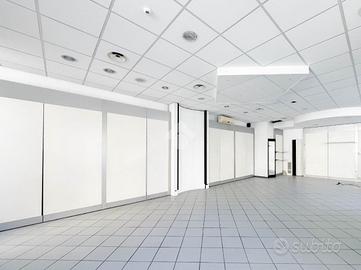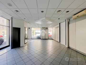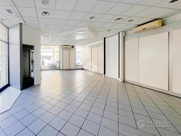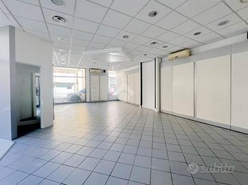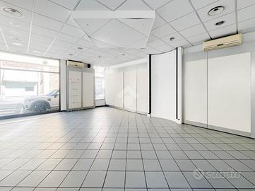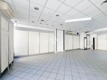 La soluzione si sviluppa su di una superficie commerciale di circa 100 metri quadrati disposti su un unico livello al piano terra di un edificio strutturato su un piano. Internamente l'immobile si presenta come un ampio open space reso molto luminoso grazie alla presenza di cinque vetrine con affaccio su strada. Il locale è completo degli impianti elettrico, di illuminazione, di condizionamento e di riscaldamento. A completare la soluzione la presenza di un servizio igienico privato.