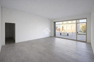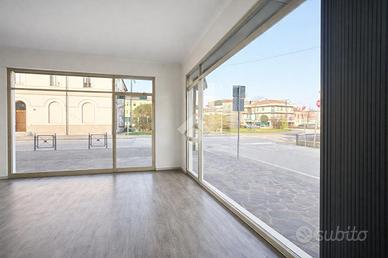 -Due ampie vetrine ad angolo fronte strada, ottima visibilità e luminosità naturale