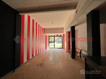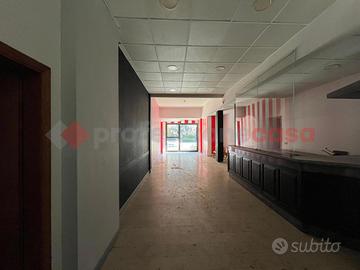 In zona ad alto transito veicolare e pedonale, fondo commerciale C/1 di 119 mq suddivisi tra ampio vano principale suddiviso in due, 2 servizi di cui uno per il personale e l'altro ad accesso facilitato e un locale seminterrato utile come deposito, fornito di accesso carico - scarico.