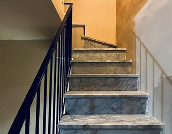 Due scale ci portano a due distinti soppalchi: il primo prospiciente l'ambiente d'ingresso ed il secondo che potrebbe essere utilizzato come un piccolo vano riservato