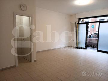 Adiacente al centro storico, in strada di passaggio, disponiamo di negozio di mq. 45 comm.li al piano terra, composto di: ampio vano open space, antibagno e bagno con ventola di aspirazione forzata. Gli impianti sono a norma e nei muri, con contro pareti in cartongesso, sono stati inseriti i fori di areazione per il sano mantenimento dell'ambiente. A fianco dell'ingresso esiste il contenitore con il contatore del gas per poter fare l'impianto di riscaldamento e posizionare la caldaia. Nessuna spesa condominiale. Disponibilità immediata.