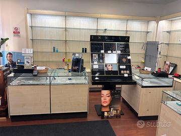 Ingresso su locale openspace attualmente adibito a profumeria; dotato di zona retro e servizio.