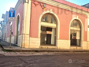 A Copertino, in zona semi-centro si vende locale commerciale in buono stato, posto in posizione angolare e con quattro vetrine su strada. L'immobile si compone da due vani al piano terra di circa 90 mq, con un retro di circa 30 mq. Inoltre, il negozio presenta un soppalco di circa 100 mq. L'immobile è dotato di agibilità. Cod. Rif. CO 340