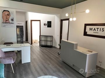 Negozio ristrutturato da 2anni, ampio ingresso,3 stanze con lavandino e mobili su misura antincendio,una stanza con doccia, bagno e antibagno, ampio ripostiglio.posto auto di proprietà nel piazzale.
