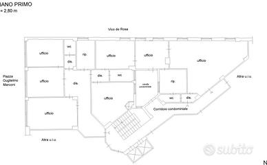 La proprietà, in discrete condizioni interne, dispone anche di uffici, al primo piano dello stesso stabile, di 11 vani.