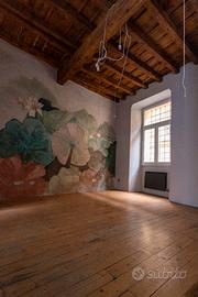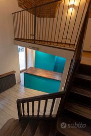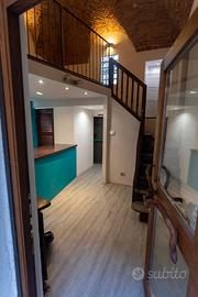 il locale è composto da due vani comunicanti di cui uno soppalcato mentre il secondo è una ampia stanza con alto soffitto storico in legno. una scaletta interna mette in comunicazione i due vani.