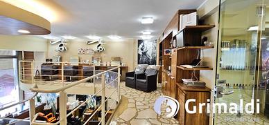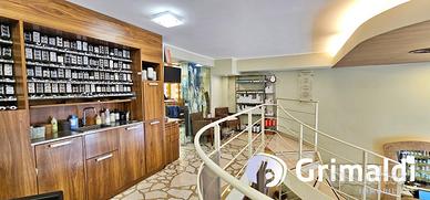 Al piano terra, un ampio open space con ripostiglio e bagno accoglie i clienti, mentre una scala interna conduce al piano interrato, composto da sei locali ad uso negozio, retro, bagno e ripostiglio. Il soppalco, accessibile tramite una scala elicoidale, offre ulteriori due vani per sfruttare al meglio lo spazio disponibile.