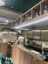 Il locale è arredato con gusto e in posizione strategica, la Cucina a vista è completamente attrezzata, il Bancone bar perfettamente organizzato.