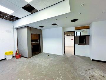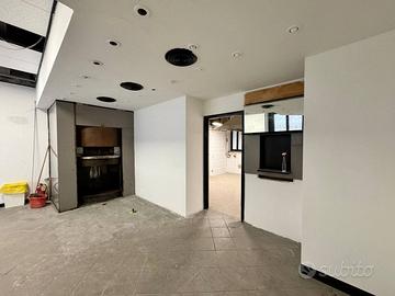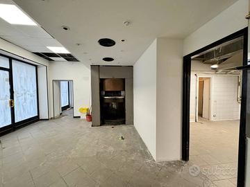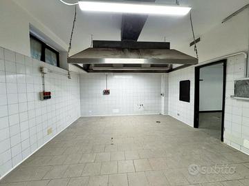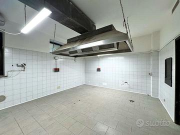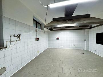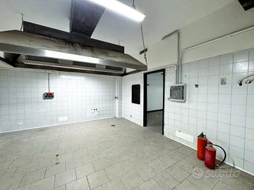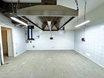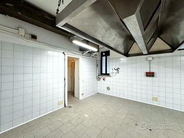 Il locale di 230 mq ha 6 vetrine su strada con ottima visibilità, 3 ingressi indipendenti e un ingresso di servizio sul retro, si sviluppa su due livelli: al piano terra (circa 170 mq), si trova la cucina attrezzata con doppia canna fumaria, forno a legna, sala e 4 bagni (di cui uno con accesso disabili), mentre al piano seminterrato di circa 60 mq troviamo il magazzino.