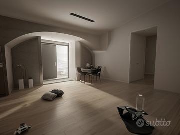 Gli interventi visivi mostrano come l'immobile potrebbe essere arredato e decorato, valorizzando gli spazi per creare un ambiente accogliente e funzionale.
