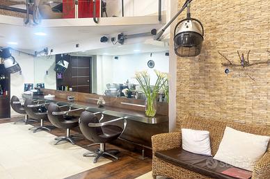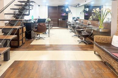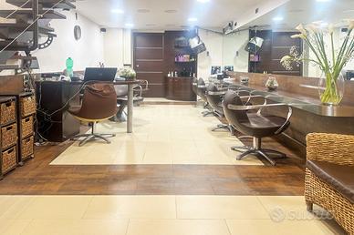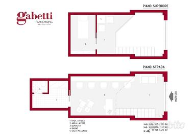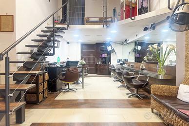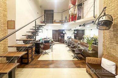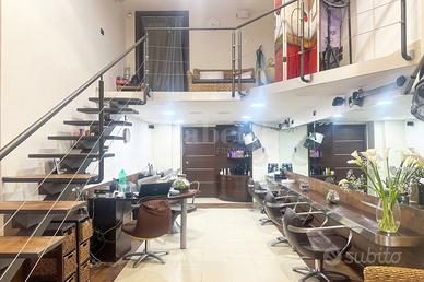 Il locale si sviluppa su una pianta rettangolare ed è attualmente adibito a salone di parrucchiere per signora. Al piano strada troviamo un primo ambiente di lavoro accogliente, seguito da un vano retrostante adibito a deposito, con servizio. Una scala interna conduce ad un soppalco, oggi utilizzato come ulteriore spazio operativo.