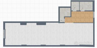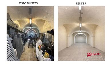 Le foto mostrano lo stato attuale; presenti anche rendering che illustrano il locale svuotato e ristrutturato, per valutarne nuove potenzialità.