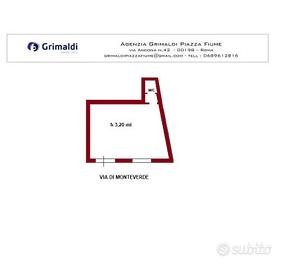 Nel quartiere di Monte Verde non distante dalla fermata del tram 8 e dal Parco di Villa Baldini la Grimaldi Immobiliare Piazza Fiume vi propone in affitto un grazioso locale commerciale di 50 mq posto al piano terra con due vetrine direttamente su strada che possono essere anche convertiti in doppio ingresso. L'immobile è accatastato come C/1 si presenta in buono stato ed è composto da ingresso, ampio ambiente, antibagno e bagno ed è dotato di climatizzazione autonoma. Sono presenti due saracinesche motorizzate. Si presta facilmente a diverse attività commerciali quali vendita al dettaglio, showroom o agenzia di servizi con ottima visibilità. Categoria catastale: C/1 Contratto commerciale (con IVA) di anni 6+6 il cui canone mensile è di € 600 per il primo anno, dal 2° anno 700 € mensili dal 3° anno 800 € mensili, dal 4°anno in poi 900 € mensili. PER MAGGIORI INFORMAZIONI CONTATTARE LA NOSTRA AGENZIA GRIMALDI ROMA PIAZZA FIUME ALLO - DAL LUNEDI' AL VENERDI' DALLE 9:00 ALLE 13:00 E DALLE 15:00 ALLE 19:00 E IL SABATO DALLE 9:00 ALLE 13:00 OPPURE INVIANDO UN'EMAIL A grimaldipiazzafiume@gmail.com La casa è il nostro mondo, oggi più di prima. Richiedici un report personalizzato con il valore di mercato della tua casa https://valutazioni.grimaldifranchising.it/agenzia/roma-piazza-fiume