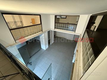 L'immobile è dotato di tre vetrine alla strada e composto da: ampio ambiente a piano terra di 100 mq (h max 5,20m), bagno con antibagno e ampio soppalco (h 2,50 m) cui si accede da scala in muratura, distribuito su tre lati, con finestre che affacciano su cortile interno. Ampia versatilità degli spazi.