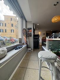 Le due ampie vetrine su strada garantiscono una visibilità eccellente ed insieme ad un'ampia finestra al piano primo inondano di luce naturale gli spazi interni, creando un'atmosfera piacevole.