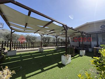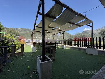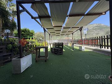"Investi sul tuo futuro: il locale perfetto è qui. " TERRACINA: SAN SILVIANO: nella lussureggiante zona residenziale della campagna Terracinese, distante 3,5 km. dal centro della città, proponiamo in ESCLUSIVA la vendita di un Immobile con ingresso indipendente di 400 mq. di cui 320 mq. ad uso commerciale e 80 mq. ad uso deposito, circondato da uno spazio esterno adibito a vari utilizzi della superficie totale di 1200 mq. Attualmente all'interno dell'immobile viene svolta una nota attività di ristorante-pizzeria con gestione familiare e tradizionale pluridecennale, con clientela fidelizzata sia turistica che locale. Il locale si suddivide all'interno come segue: appena entrati si apre una grande sala interna a vetrate con vista libera nel giardino circostante, adiacente troviamo un locale bar, a seguire due cucine di cui una con forno a legna marca Paresi, vari ripostigli e servizi igienici sia per la clientela e per il personale. Completa l'area una grande zona verandata coperta attrezzata con tanti giochi per i bambini. Esternamente vi sono aree dedicate e attrezzate per i più piccoli, aree verdi con alberi ad alto fusto e un grande piazzale per il parcheggio di numerose auto. L'immobile è completo di CANNA FUMARIA e si presenta in ottime condizioni manutentive, dotato di aria condizionata e pale ventilatori, così come la cucina, fornita di tutte le attrezzature necessarie per la somministrazione. Completa la proprietà, nella parte retro dei comodi magazzino utile come dispensa e stoccaggio merci. La vendita dell'attività comprende una cucina completamente fornita di tutte le attrezzature per lavorare da subito, come abbattitore, forni elettrici, 2 cappe 1 per griglia carne, impastatrici, banchi, frigo, 4 fuochi, bollitore, friggitrice, lavastoviglie, piano bar, tavoli, sedie, stoviglie ecc.. . Immobile è dotato di allaccio rete fognaria, utenza idrica Acqualatina e pozzo, bombolone GPL. Rende interessante l'offerta gli attuali allestimenti del lo