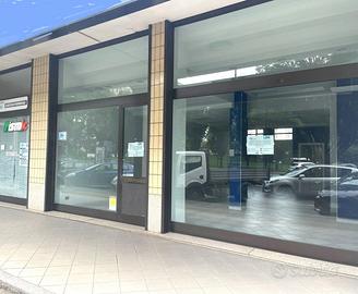 Ampio, luminoso locale negozio con due grandi vetrine e porticato alto antistante, adatto per ogni attività e visibilissimo.