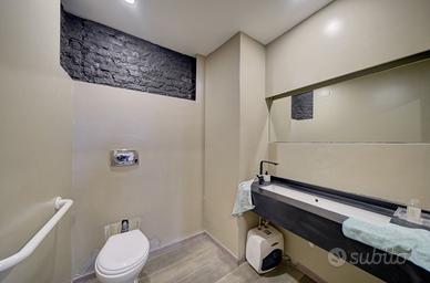 Vi è un servizio igienico per gli ospiti, uno spogliatoio riservato al personale con un secondo servizio interno. Completa la proprietà una cantina ad uso deposito.