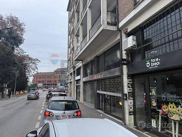 La struttura, risalente agli anni 60, si sviluppa al piano terra con ampie vetrine fronte strada, area principale open-space e servizi igienici, mentre al piano inferiore si trova un ampio spazio magazzino perfetto come deposito o area di supporto operativo.