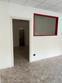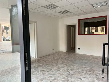 Affittasi negozio /ufficio piano terra con 2 vetrine e 2 ingressi . Il negozio / ufficio e' diviso in 2 unità comunicanti ognuna con bagno nuovo , vetrine nuove .