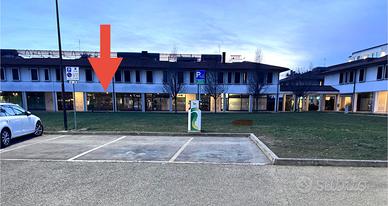 Fronte piazza, piano terra , sotto porticato, servizi e parcheggio.
