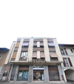 Sito in zona centrale di Cassano Magnago, all'interno di un piccolo contesto composto da negozi di piccole dimensioni con vetrine fronte strada al piano terreno e appartamenti ai piani superiori.