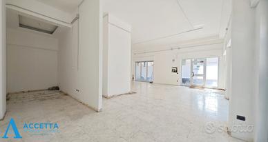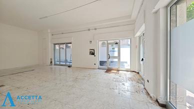 (Riferimento: 09801) Proponiamo in vendita, in zona centrale di Taranto, un locale commerciale con ben cinque vetrate angolari, situato in Via Dante Alighieri angolo Via Duca di Genova, nelle immediate vicinanze del Lungomare e dell'ospedale. Questo spazio si trova in una zona commerciale e trafficata, è ubicato al piano terra e vanta ben cinque vetrate su strada ( tre su Via Dante e due su Via Duca di Genova), garantendo una ottima visibilità. Internamente l'immobile è composto da un singolo spazioso ambiente con un bagno.