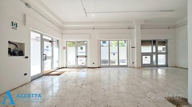 (Riferimento: 980) Proponiamo in affitto in zona centrale di Taranto un locale commerciale con ben cinque vetrate angolari, situato in Via Dante Alighieri angolo Via Duca di Genova, nelle immediate vicinanze del Lungomare e dell'ospedale. Questo spazio si trova in una zona commerciale e trafficata, è ubicato al piano terra e vanta ben cinque vetrate su strada ( tre su Via Dante e due su Via Duca di Genova), garantendo una ottima visibilità. Internamente l'immobile è composto da un singolo spazioso ambiente con un bagno.