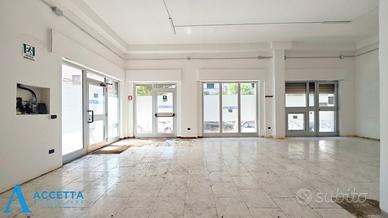(Riferimento: 790) Proponiamo in affitto in zona centrale di Taranto un locale commerciale con ben cinque vetrate angolari, situato in Via Dante Alighieri angolo Via Duca di Genova, nelle immediate vicinanze del Lungomare e dell'ospedale. Questo spazio si trova in una zona commerciale e trafficata, è ubicato al piano terra e vanta ben cinque vetrate su strada ( tre su Via Dante e due su Via Duca di Genova), garantendo una ottima visibilità. Internamente l'immobile è composto da un singolo spazioso ambiente con un bagno. Grazie alla sua posizione e alle sue caratteristiche, l'immobile è ideale per attività commerciali di ogni genere, showroom o servizi.