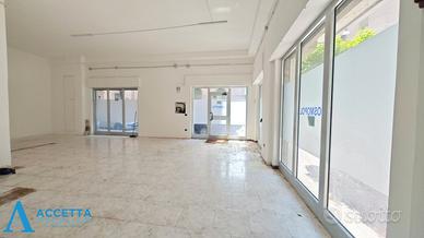 (Riferimento: 09801) Proponiamo in vendita, in zona centrale di Taranto, un locale commerciale con ben cinque vetrate angolari, situato in Via Dante Alighieri angolo Via Duca di Genova, nelle immediate vicinanze del Lungomare e dell'ospedale. Questo spazio si trova in una zona commerciale e trafficata, è ubicato al piano terra e vanta ben cinque vetrate su strada ( tre su Via Dante e due su Via Duca di Genova), garantendo una ottima visibilità. Internamente l'immobile è composto da un singolo spazioso ambiente con un bagno. Grazie alla sua posizione e alle sue caratteristiche, l'immobile è ideale per attività commerciali di ogni genere, showroom o servizi.