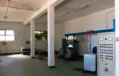 ampia area lavorazione (ex oleificio con cisterne), zona transito mezzi e blocco servizi/uffici. Completano la proprietà una cabina di trasformazione elettrica esterna e un'area recintata.