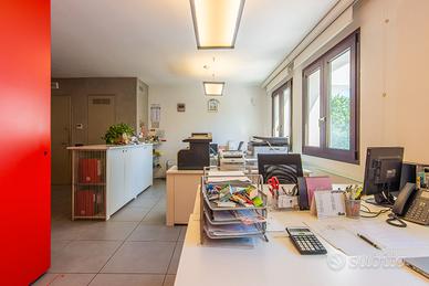 La struttura dispone anche di un ascensore condominiale per facilitare l'accesso ai piani superiori. Inoltre, include un ampio magazzino adiacente all'ufficio, con una superficie di circa 120 mq; questo spazio versatile può essere utilizzato sia come area per lo stoccaggio che come rimessa.