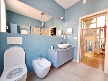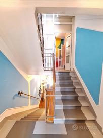P.1°: ampio disimpegno, 2 letto matrimoniali, 1 camera singola al piano ammezzato con piccolo affaccio, bagno completamente rifatto.