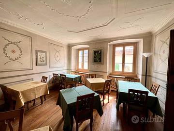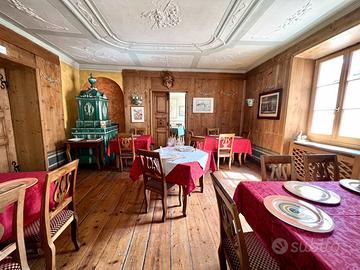 Piano Nobile (Primo Piano): ospita un rinomato ristorante di charme con circa 70 coperti, distribuiti in tre eleganti sale arredate con mobili d'epoca, pregiate stufe ad "olle" e finiture originali.